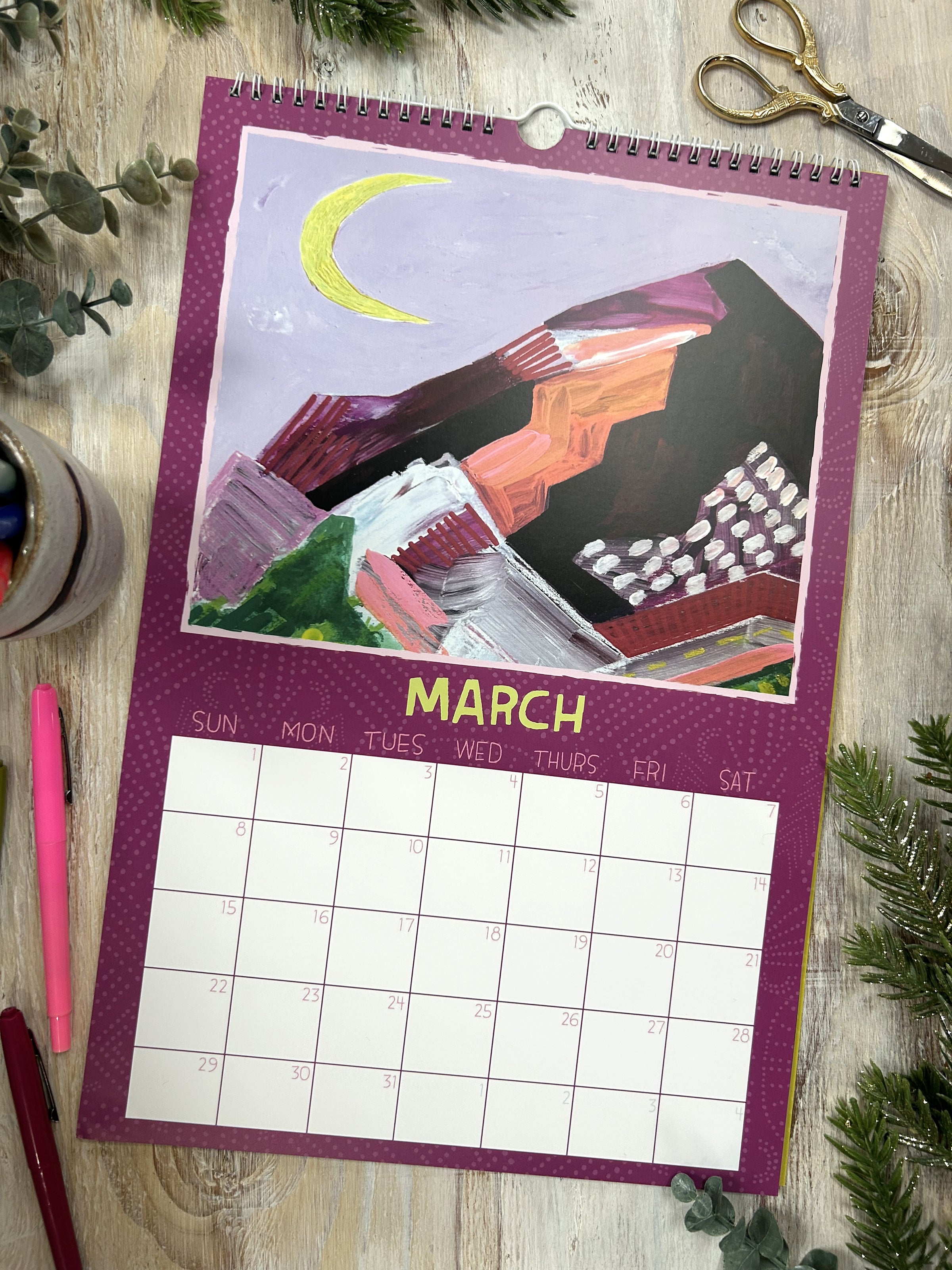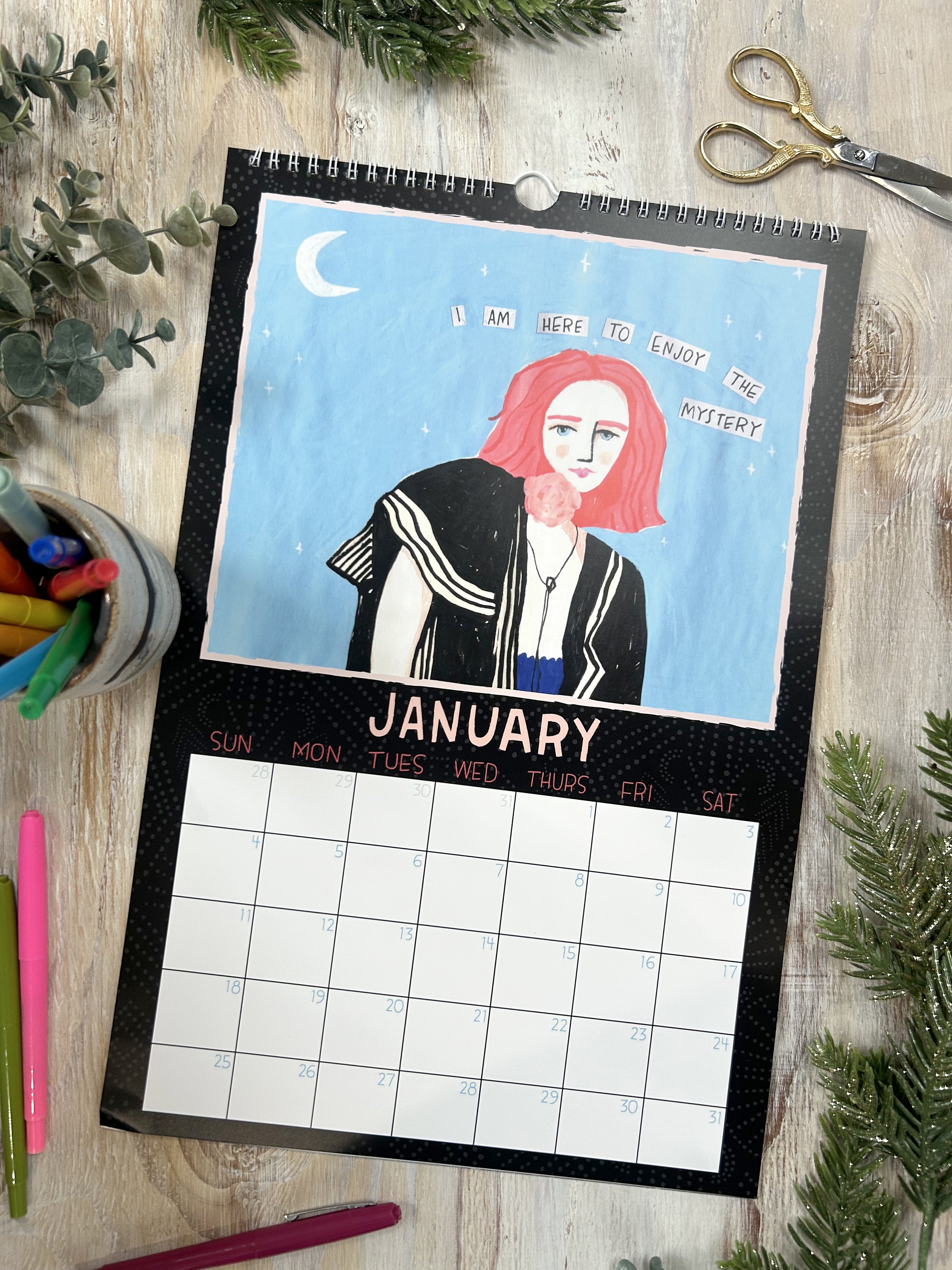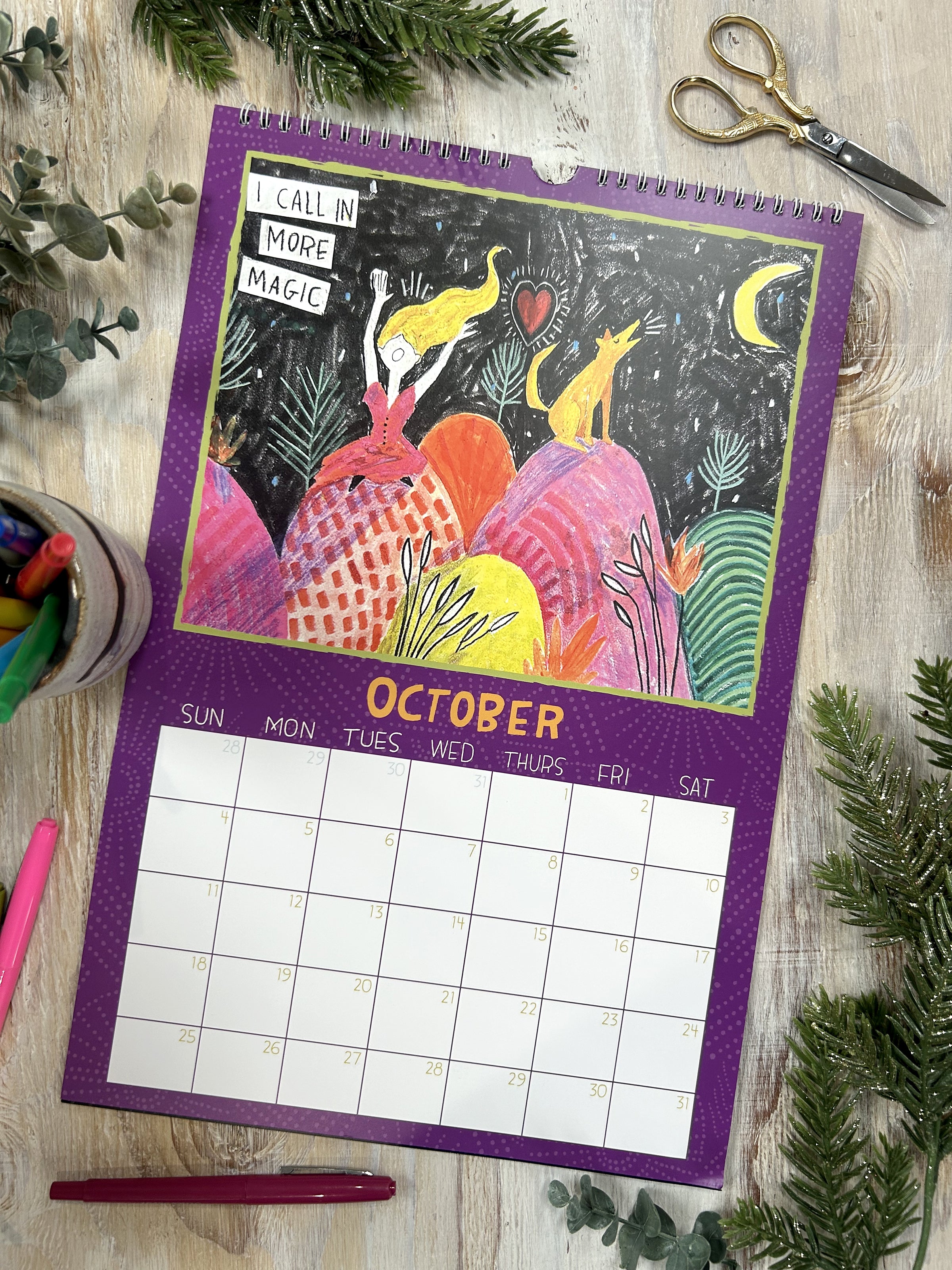 My 2026 illustrated calendar is filled with drawings and paintings created inside my sketchbooks, to take you through the darker days of winter, through the fresh energy of spring, the ripeness of summer, the mellowing of the fall, and then back into the magic of the moody dark. It's bright and colorful all year long, with a new illustration to light up your walls each month!